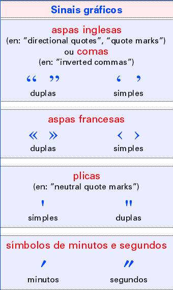 Tem aspas duplas " e aspas simples '.. . 1) antes e depois de uma citação textual ou para assinalar transcrições textuais, ou seja, indicar no.
